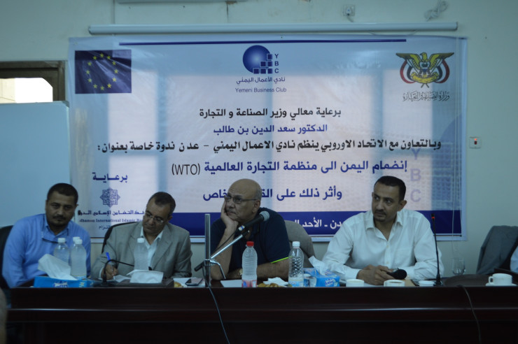 برعاية وزير الصناعة والتجارة تم تنظيم ندوة خاصة حول انضمام اليمن إلى منظمة التجارة العالمية وأثر ذلك على القطاع الخاص.