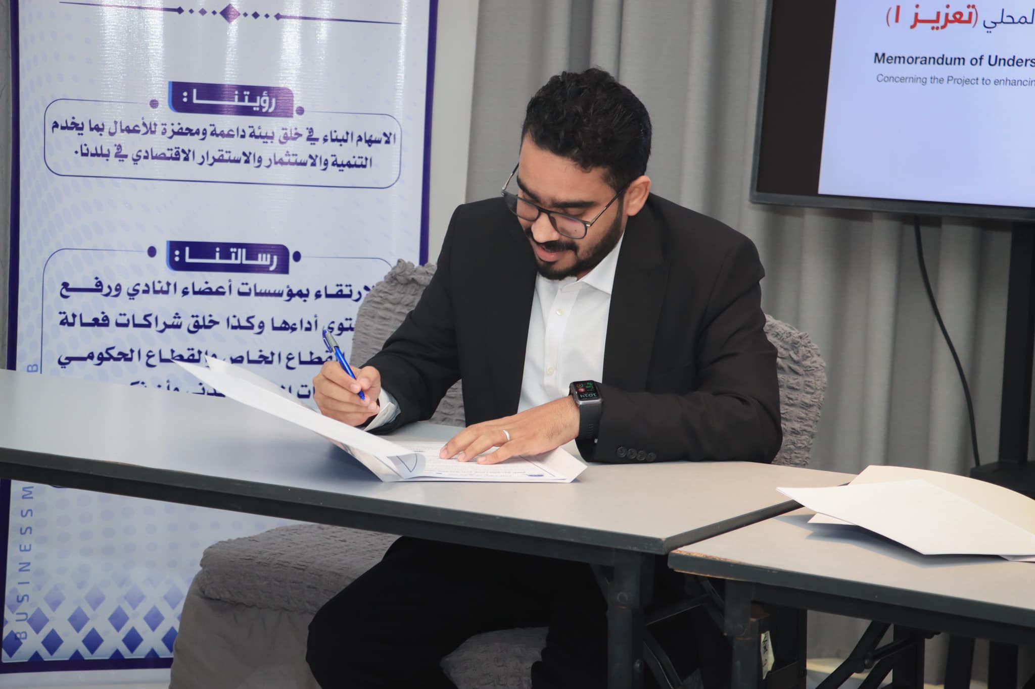 تم اليوم توقيع مذكرة تفاهم بين نادي رجال الأعمال وشركة بازاري ضمن مشروع “تعزيز 1” بدعم من الاتحاد الأوروبي وبالشراكة مع مؤسسة بناء للتنمية.