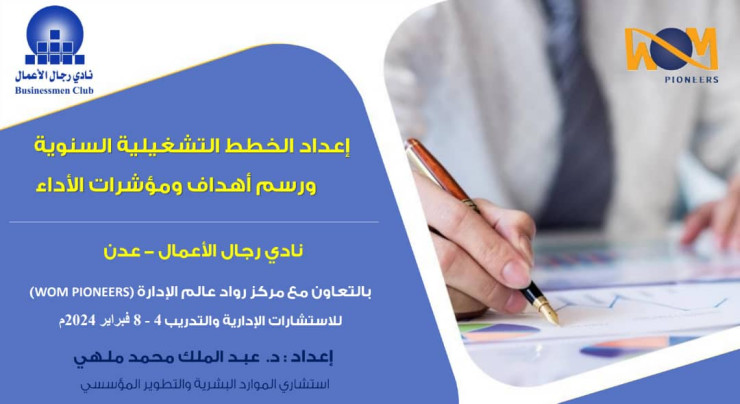 لحرصنا على تطبيق رؤيتنا و أهدافنا الاستراتيجية التي نعمل عليها لتعزيز القدرات والمهارات من خلال توفير فرص التدريب وورش العمل والموارد التدريبية لتطوير المهارات والمعرفة لأعضاء النادي والقطاع الخاص مما يساهم في تعزيز قدراتهم ونجاح أعمالهم وفي سياق هذا الهدف نفذ النادي على مدار أربعه أيام بمعدل خمس ساعات تدريبية لليوم الواحد برنامج تدريبي بعنوان ( أعداد الخطط التشغيلية ورسم الأهداف ومؤشرات الأداء), وقد تم ذلك بالتعاون مع مركز رواد عالم الإدارة واستهدف البرنامج المستويات القيادية والإشرافية في عدد من الشركات والمجموعات التجارية الرائدة في عدن وقد أتبع البرنامج منهجية تفاعلية وتطبيقية تمكن المتدربين من القدرة على وضع اهداف ذكية واستخدام مؤشرات الأداء لتحسين أداء العمل.